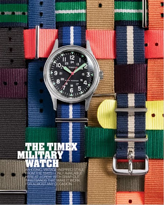 I've gotten more inquiries this week regarding a Timex watch I posted on Tumblr than anything else so I figured I'd highlight it here for anyone who believes one site run by me is already more than enough. I stumbled upon this timepiece while searching for Timex's Oversize Camper, which was supposed to drop in July, but has yet to show up in to many places - it is available on Timex's Canadian site and in store at select Nordstrom locations. Anyhow, when I was browsing Nordstrom's Timex stock I found a model I had never seen before. The Heritage watch is a pretty good looking number coming in at under 100 bones. That's kinda pricey for anything Timex (especially when you can get a Camper for like $20), but still a cool looking option for those of you in the market for a new watch. Part of me thinks that some of the pricepoint is dictated to the "topstitched, leather-lined canvas strap" it comes with, which is quite the buzzkill for anyone who planned on switching in a fresh NATO first and foremost. If you're the kinda guy who has mulled over dropping north of a Benjamin on another Timex at, say, J. Crew you might want to do some browsing first. As one can imagine, the "upscale" Timex market isn't incredibly deep, but that doesn't mean you can't find some handsome watches with a little digging. I did an admittedly half-assed search to find this watch on the cheap (Amazon, Timex.com, etc.), but couldn't locate it elsewhere. Who knows, maybe it will show up at J. Crew.